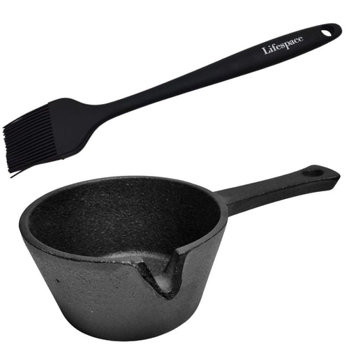 Lifespace 9,5cm Cast Iron Basting Pot & Lifespace Silicone Basting Brush Bundle Deal