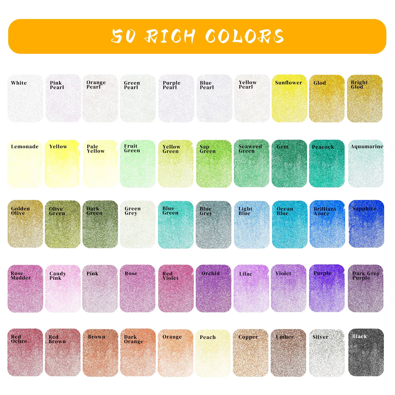 Vibrant and Pigmented Colours - Dive into a world of colour with our 50 vibrant metallic watercolour hues. Each colour is strongly pigmented, ensuring clarity and brilliance in your artwork. With easy colour mixing, you can create an endless range of shades and tones to bring your artistic vision to life.