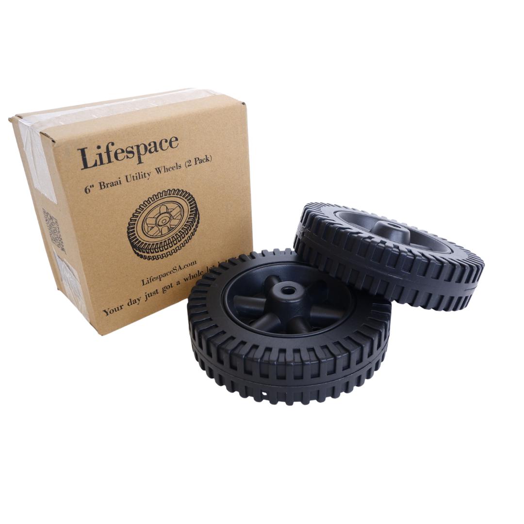 Upgrade your outdoor mobile equipment with the Lifespace 6" Universal Replacement Wheels, ensuring effortless mobility and versatility for your braais, patio furniture, and more. Sold in pairs, these wheels provide a convenient solution for enhancing the functionality of your outdoor essentials.