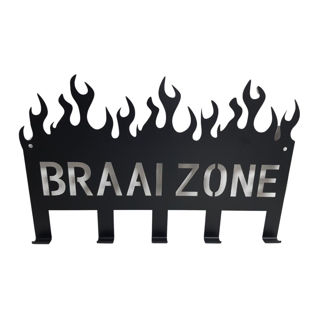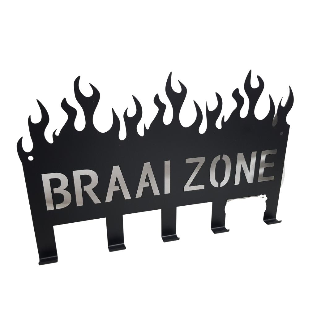 Introducing the Lifespace "Braai Zone" Braai Utility Rack with 5 hooks, the essential organizer for your braai tools and accessories.