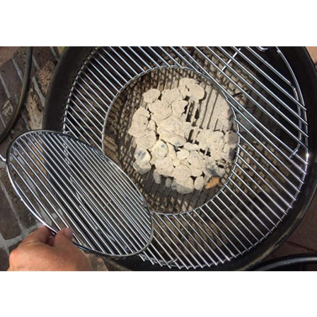 Hinged Design for Easy Access - Our grid features a hinged design, allowing you to effortlessly add briquettes to your kettle or adjust the coals during grilling sessions. Say goodbye to the hassle of removing the entire grid just to tend to the fire.