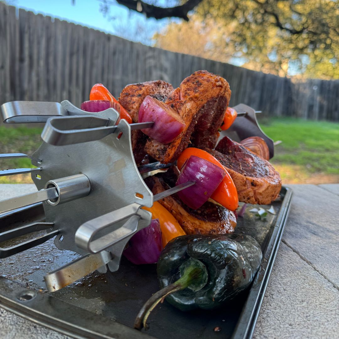 Effortless Perfection - Let the rotisserie do the heavy lifting as you set up these skewers and watch the magic unfold. The rotating motion guarantees thorough cooking, leaving meats and veggies tender and bursting with flavour. With the self-basting action of the rotisserie, each bite remains moist and tantalizingly juicy.