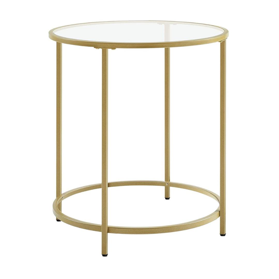 Upgrade your living space with the Lifespace Round Glass Side End Table with Gold Frame - a timeless addition that effortlessly blends style and practicality.