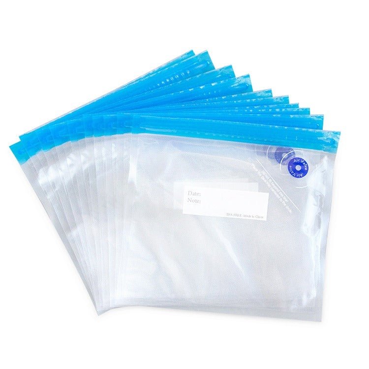 - CLEAN AND ORGANIZED KITCHEN: Durable BPA free plastic reusable bags feature reinforced zipper lock to ensure a strong and lasting seal; Bags are great for SOUS VIDE cooking, quick vacuum marinating, and to prevent freezer burn.
