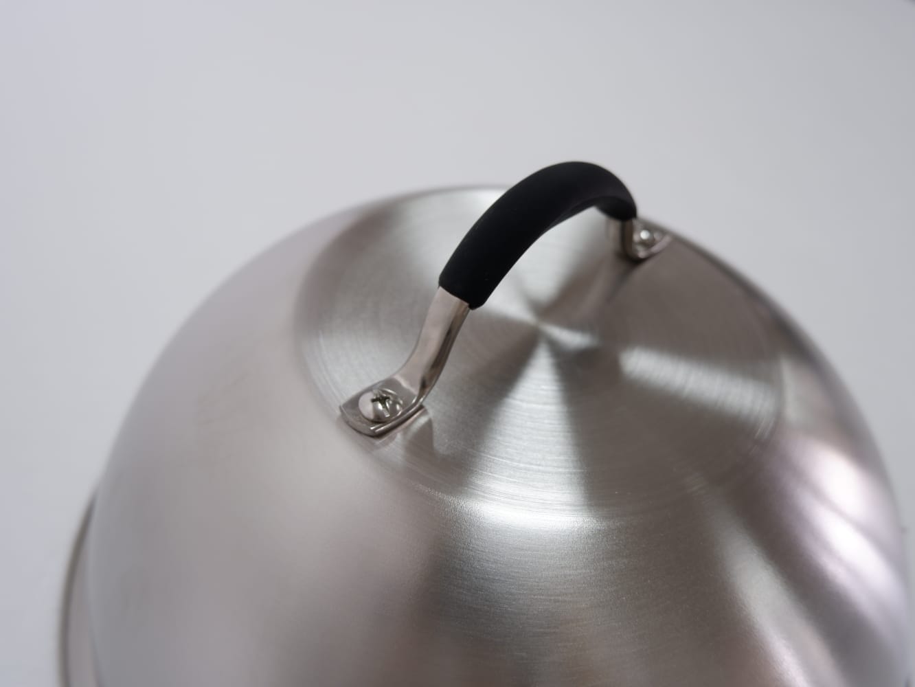 Heat-Resistant Handle - The handle is coated with silicone and securely attached to the dome. It's designed to be slightly higher than usual for ease of use, and its heat-resistant properties protect your hand while handling hot dishes. The stain-resistant polished stainless steel construction makes it easy to clean after use.