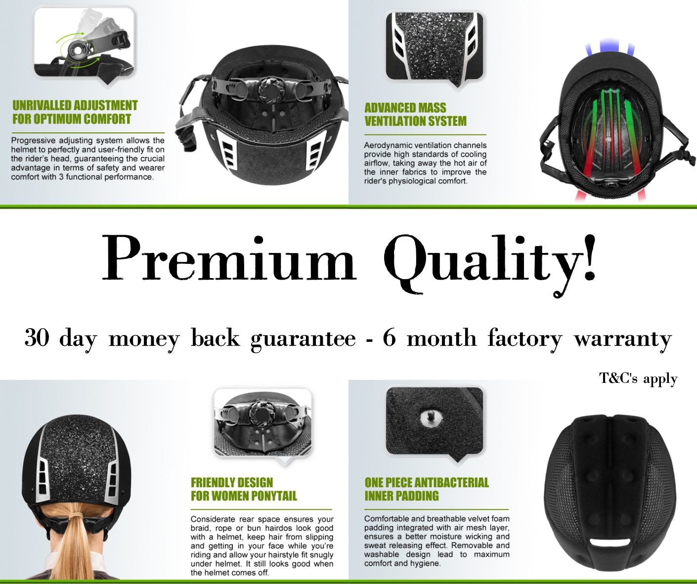 Safety First - The Lifespace Premium Equestrian Helmet is extensively tested and certified to meet multiple international safety standards and conforms to European health, safety, and environmental protection standards. The helmet also meets with VG1 & ASTM international equestrian safety standards and the SEI & PAS 015 United States and Great Britain safety standards.