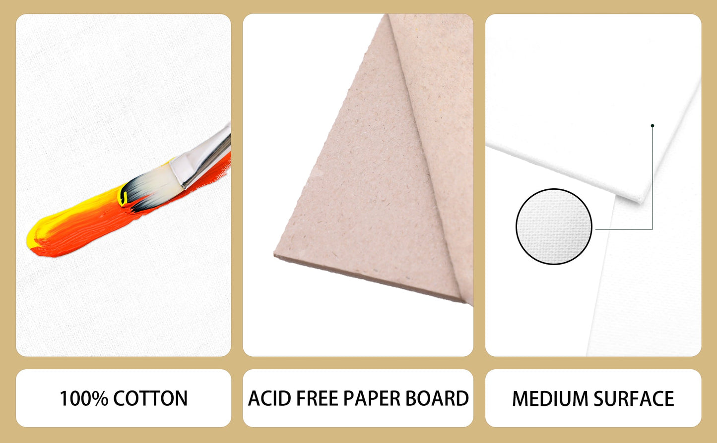 Crafted from 100% Pure Cotton Canvas - Each canvas in the set is prepared with 8oz primed canvas and is triple primed with acid-free acrylic gesso primer, providing a smooth and sturdy surface for your artistic creations.