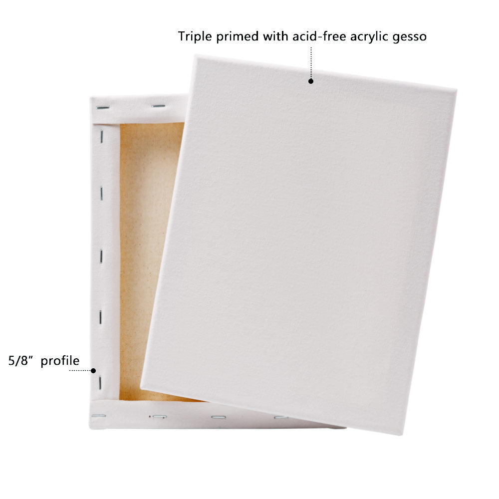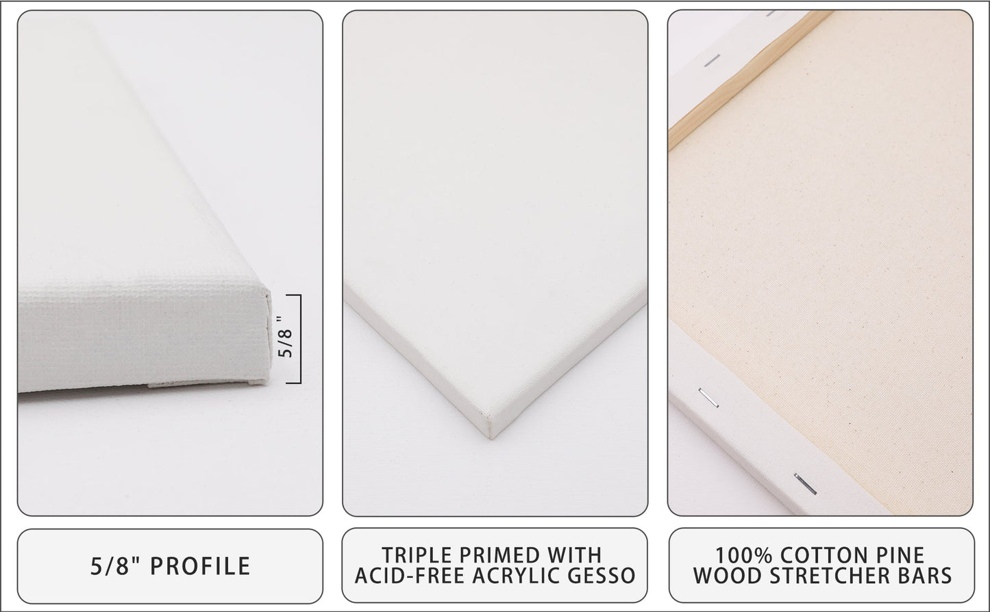 Crafted from 100% Pure Cotton Canvas - Each canvas in the set is prepared with 8oz primed canvas and is triple primed with acid-free acrylic gesso primer, providing a smooth and sturdy surface for your artistic creations.