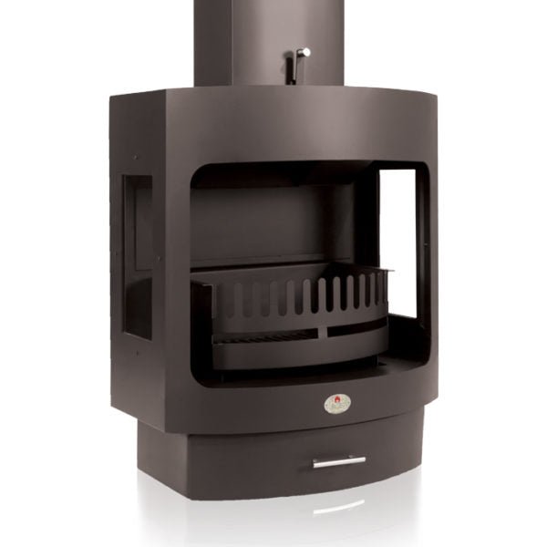 This contemporary fireplace is ideal for against the wall application. The large ash drawer in the foot peace makes cleaning an easy and less frequent task. Glass on the sides create a bigger view on the fire from all angles and improve the ambiance of this fireplace.