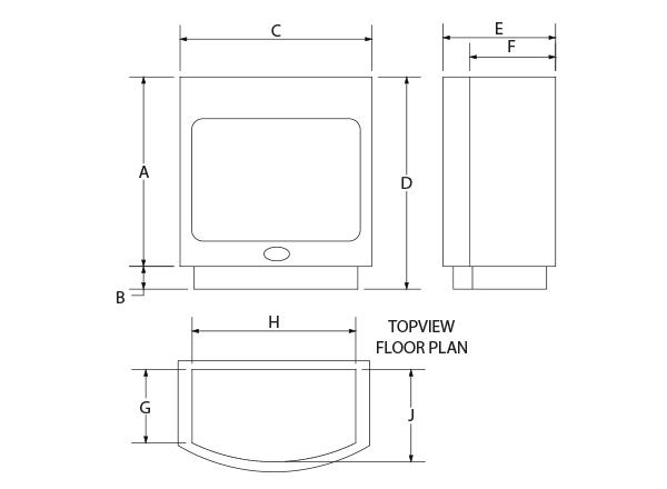 This vent free fire box is designed for freestanding installations against a wall.