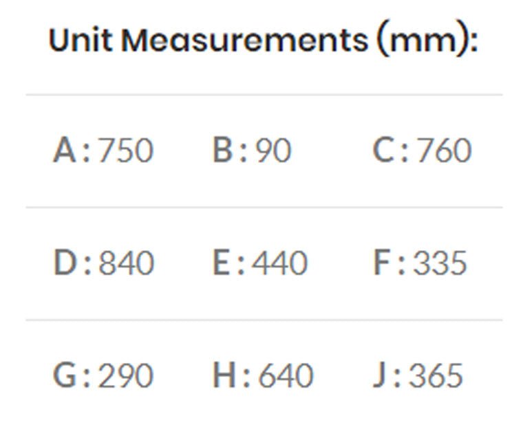 Dimensions (WxHxD) 760 x 750 x 335mm