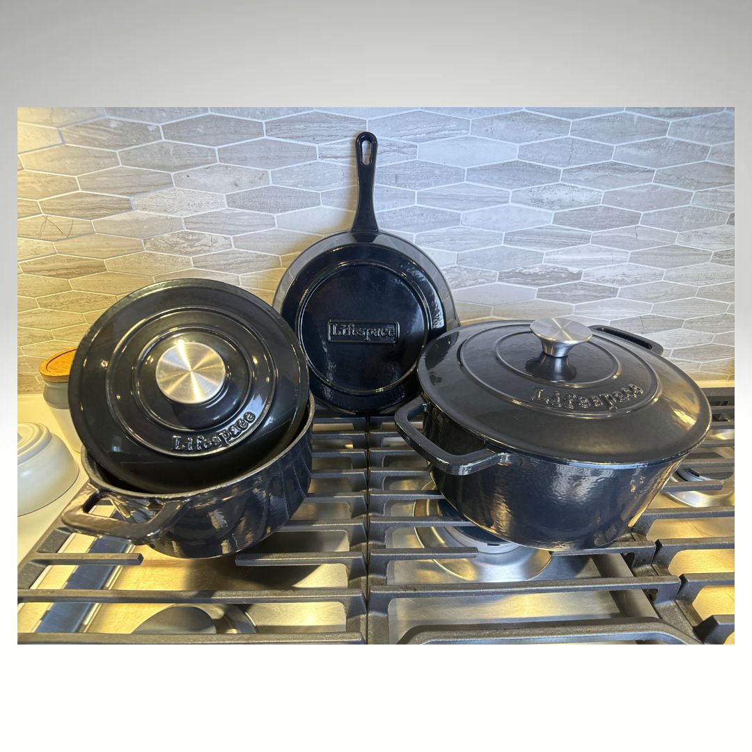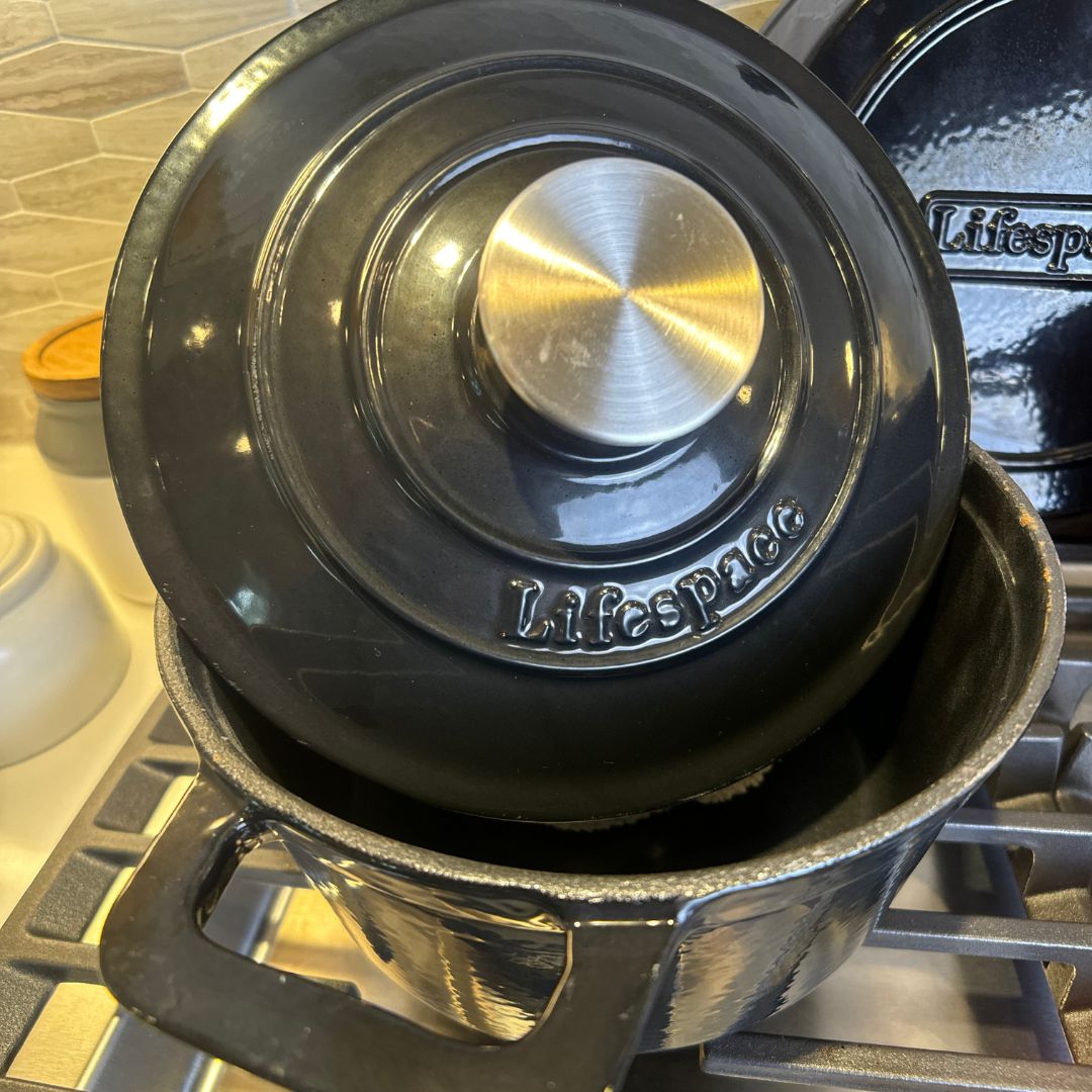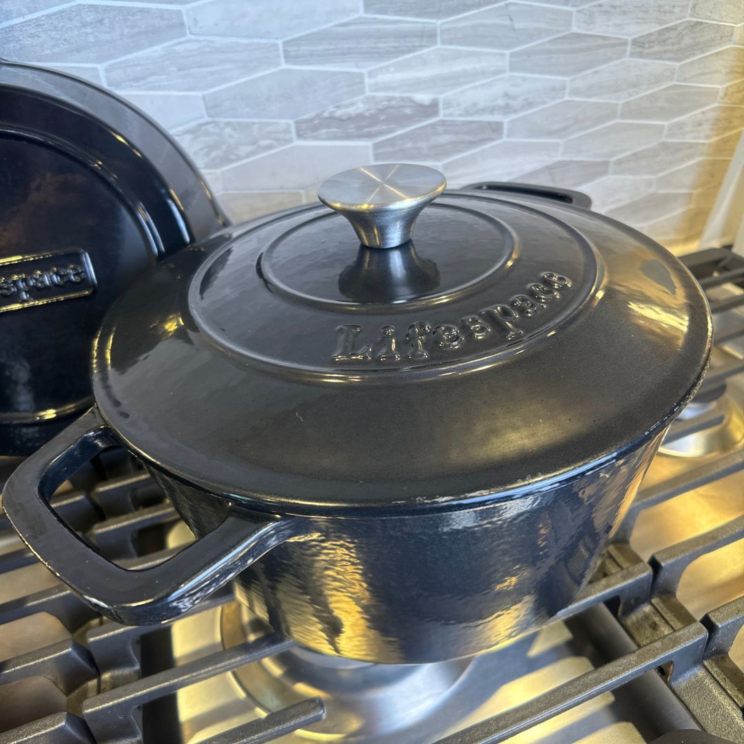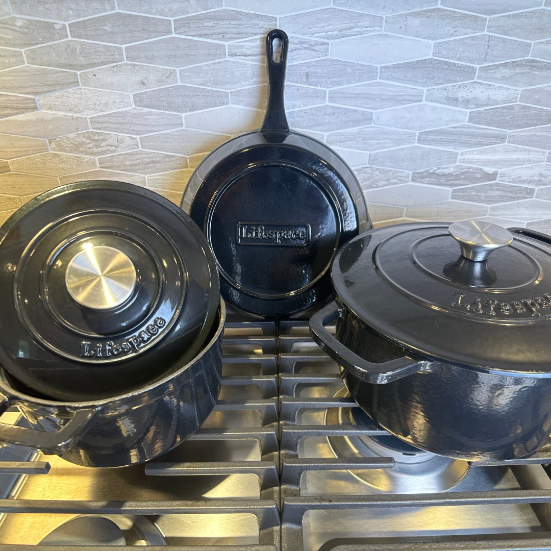 Lifespace 5-pc Black Enamel Cast Iron Pot & Skillet Set