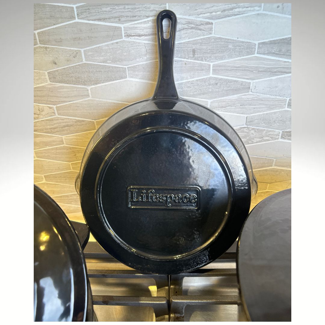 1 x Lifespace Cast Iron Black Enamel Skillet