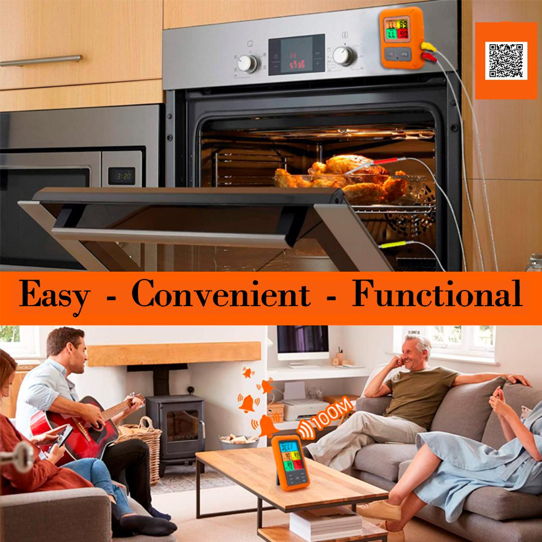 Long Wireless Range - Enjoy the freedom to roam up to 100 meters away from the grill while still monitoring your meat. The wireless transmitter sends real-time temperature readings to the receiver, allowing you to multitask with ease.