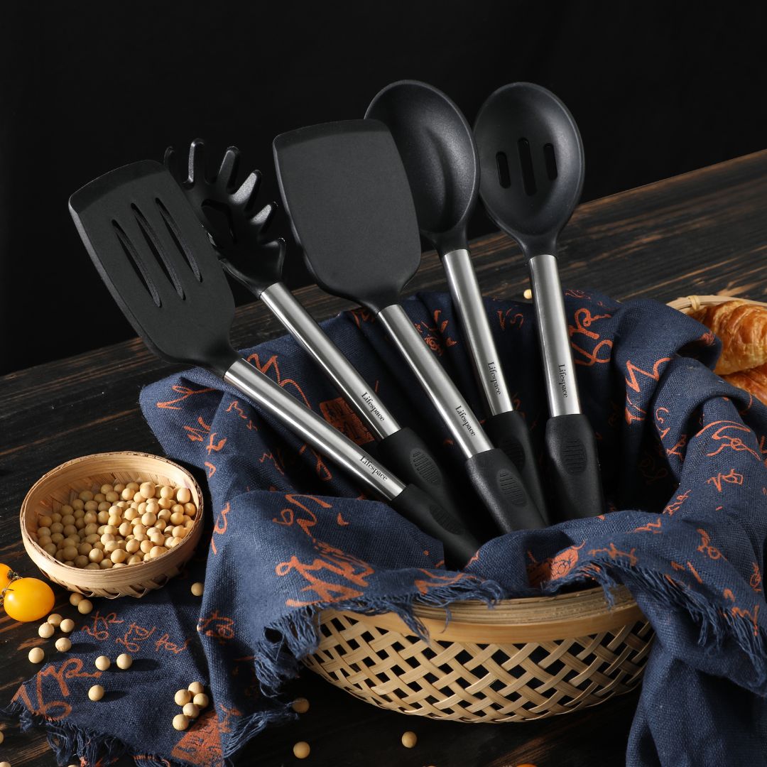 Food-Grade Silicone & Stainless Steel Construction: Made from food-grade silicone and premium stainless steel, the Lifespace utensils ensure no harmful substances are released into your food, providing a safe and long-lasting solution for daily cooking. The sturdy stainless steel handles resist rust and breakage, ensuring years of reliable use.