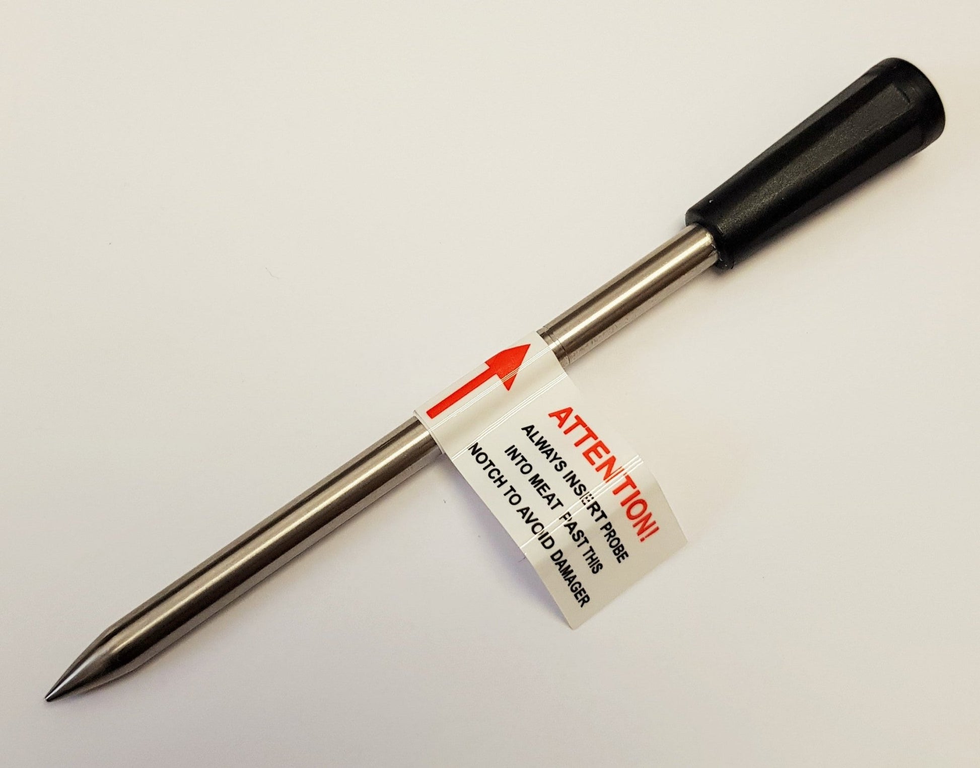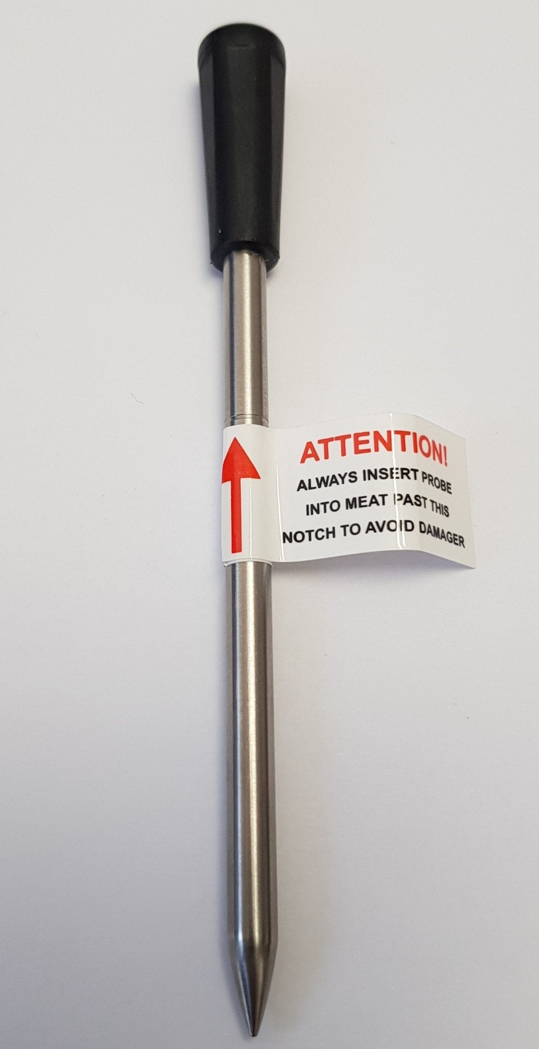 - Our thermometer is made of food-grade stainless steel for real-time temperature measurement data to your smart device. The probe monitors the internal temperature of the meat up to 100°C.