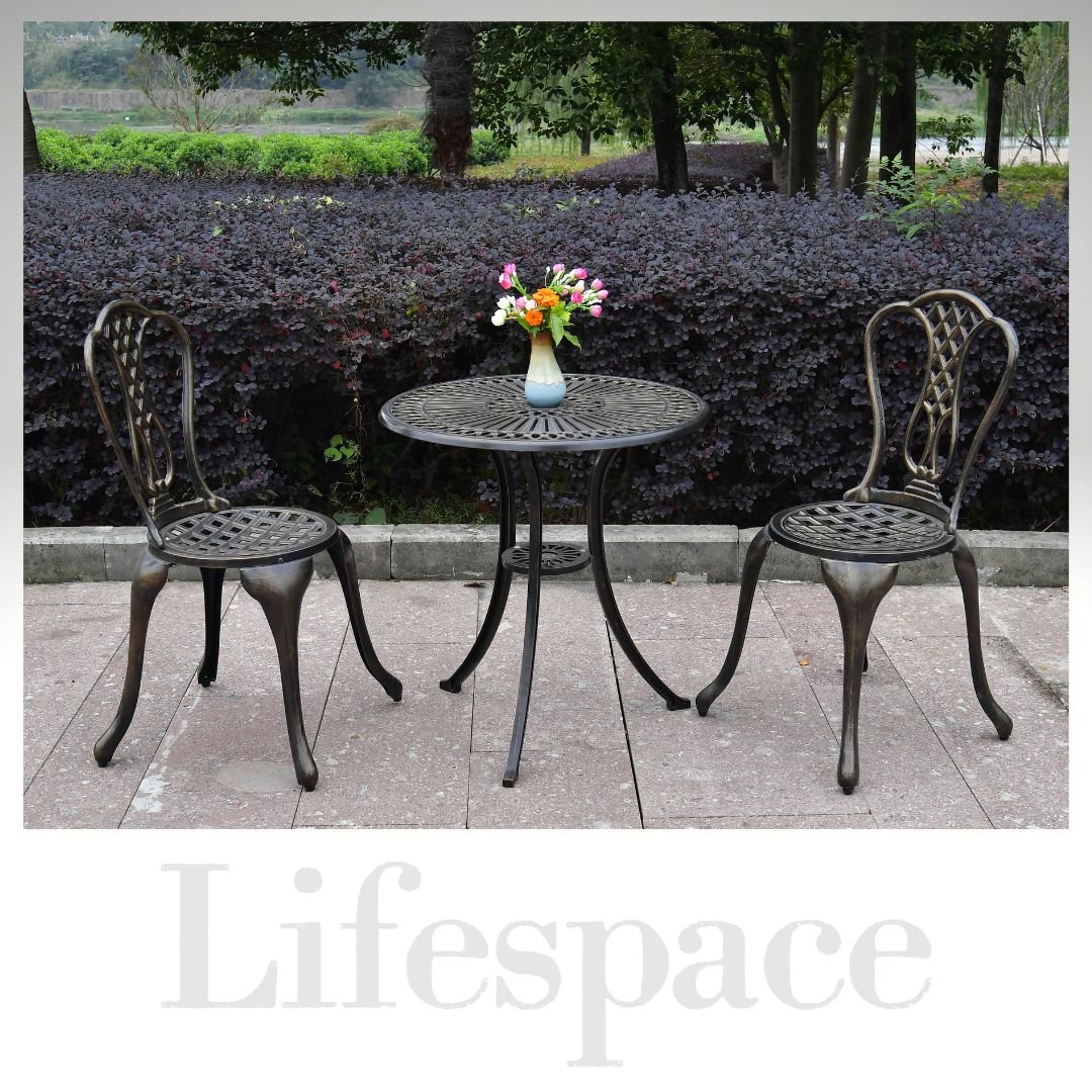 Lifespace Cast Aluminium 3pc Bistro Patio Garden Set with Curved Back (Bronze)