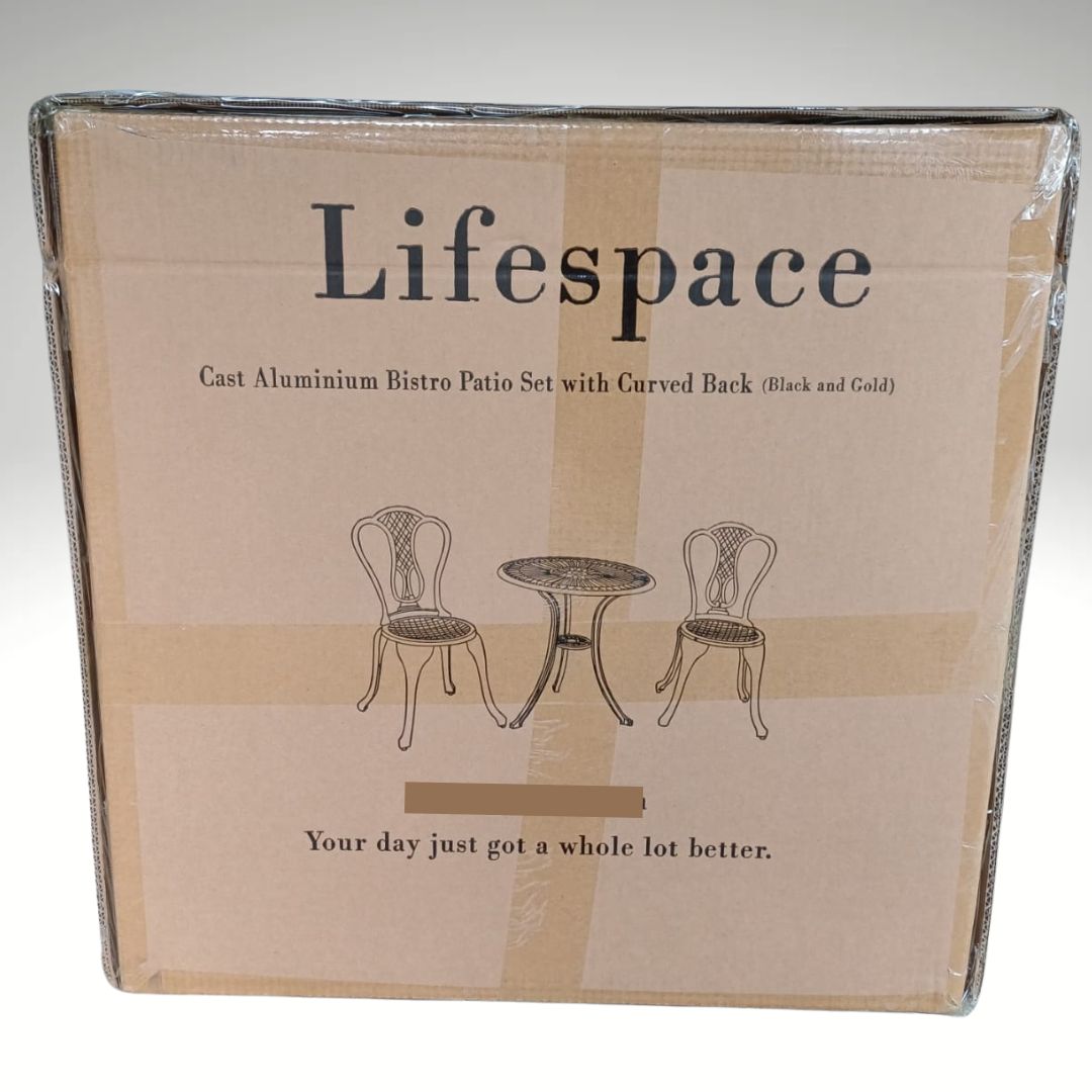 Lifespace 3pc Cast Aluminium Bistro Patio Set with Curved Back (Black & Gold) – Elegant, Durable, and All-Weather Ready