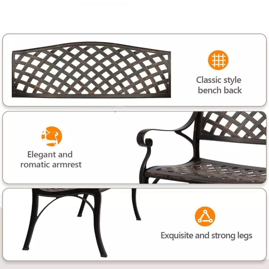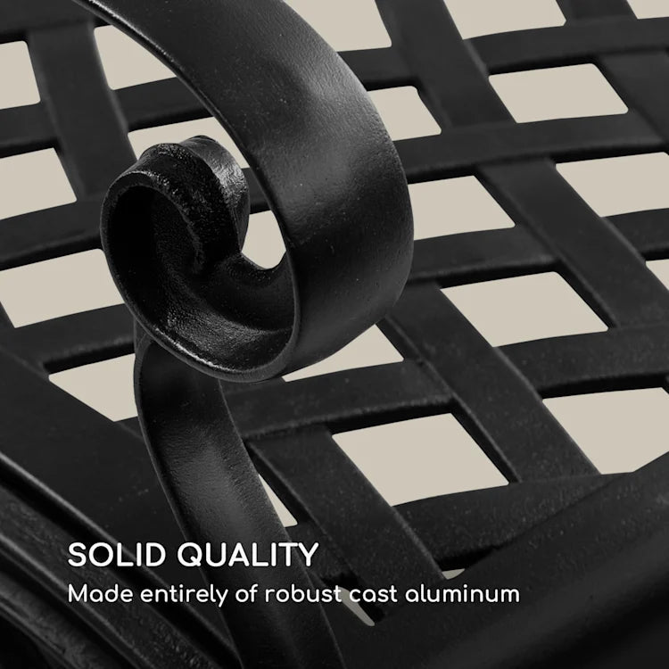 Premium Quality and durability: Made from high-quality cast aluminium, this garden bench is built to last through all seasons. Its rust-resistant and sturdy construction ensures that it remains a durable fixture in any outdoor setting, including coastal environments where salty air can often cause damage. The robust materials guarantee long-lasting performance while maintaining the bench's refined aesthetic.