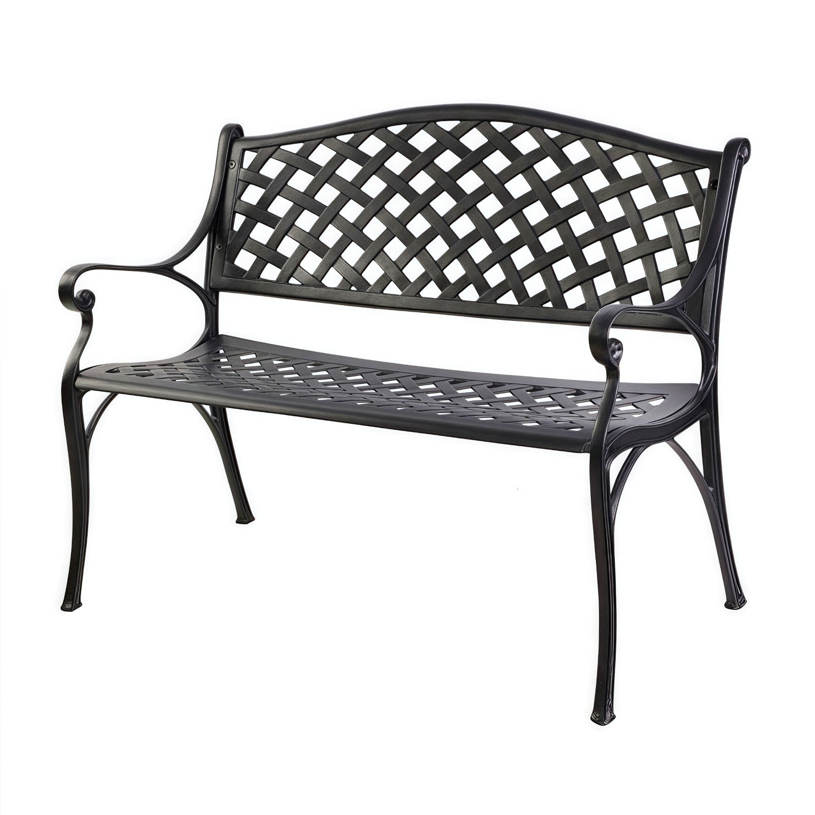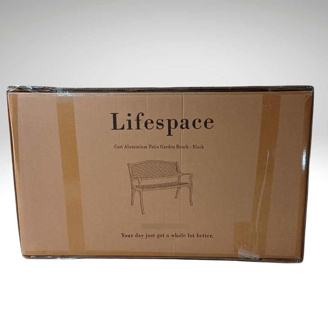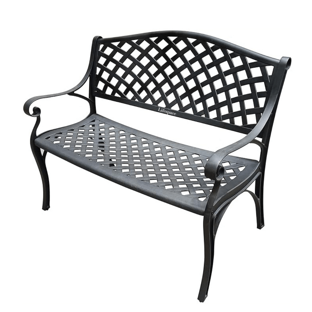 1 x Lifespace Cast Aluminium Patio Garden Bench with Armrests (Black)Â