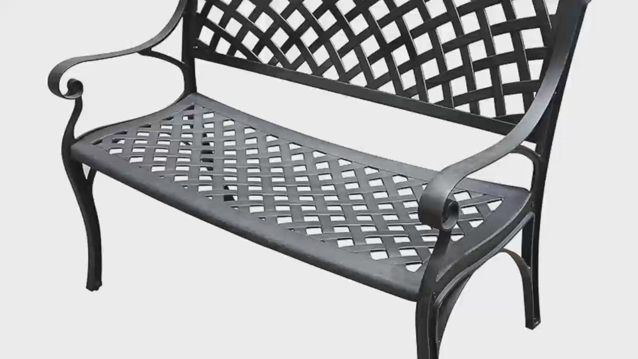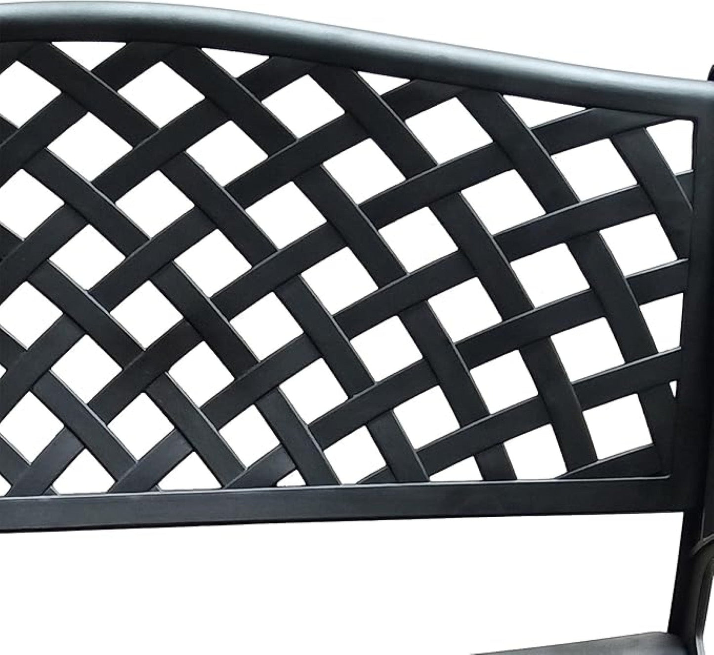 Versatile Design for Any Outdoor Space: Perfectly suited for a variety of outdoor spaces, this compact patio garden bench fits seamlessly into small balconies, cozy garden corners, or expansive patios. The bench is designed with armrests and a slightly tilted backrest, providing both comfort and elegance, making it ideal for lounging or relaxing outdoors. The timeless criss-cross design complements a range of décor styles, from modern to traditional.