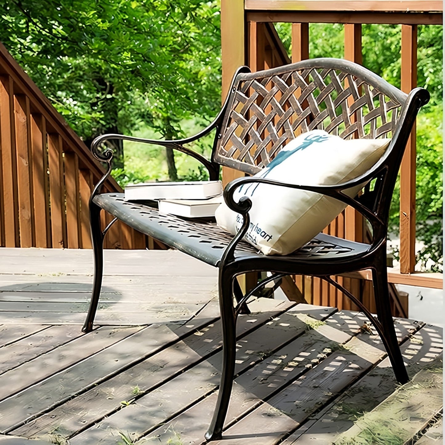 Lifespace Cast Aluminium Patio Garden Bench with Armrests (Bronze)