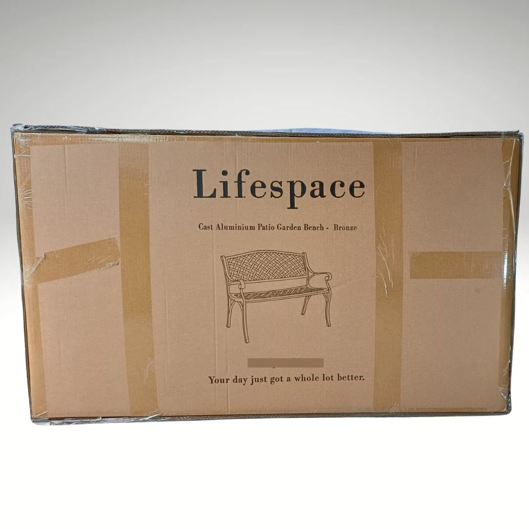 1 x Lifespace Cast Aluminium Patio Garden Bench with Armrests (Bronze)