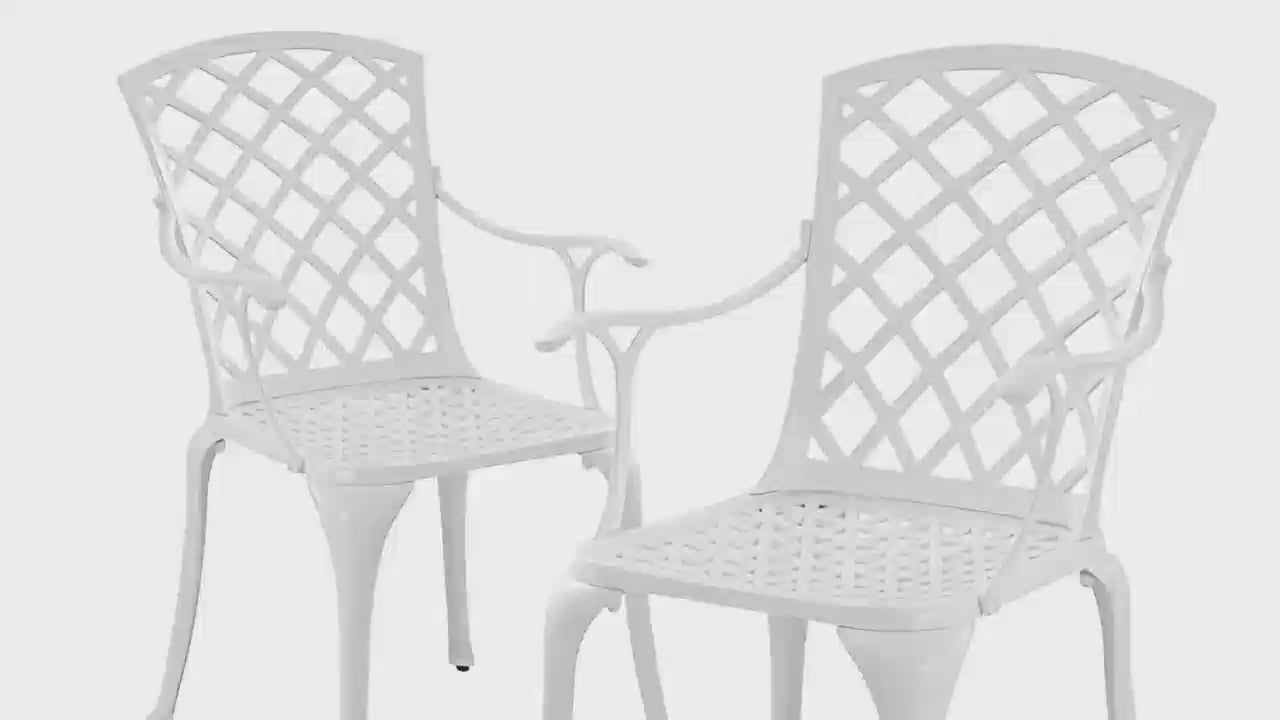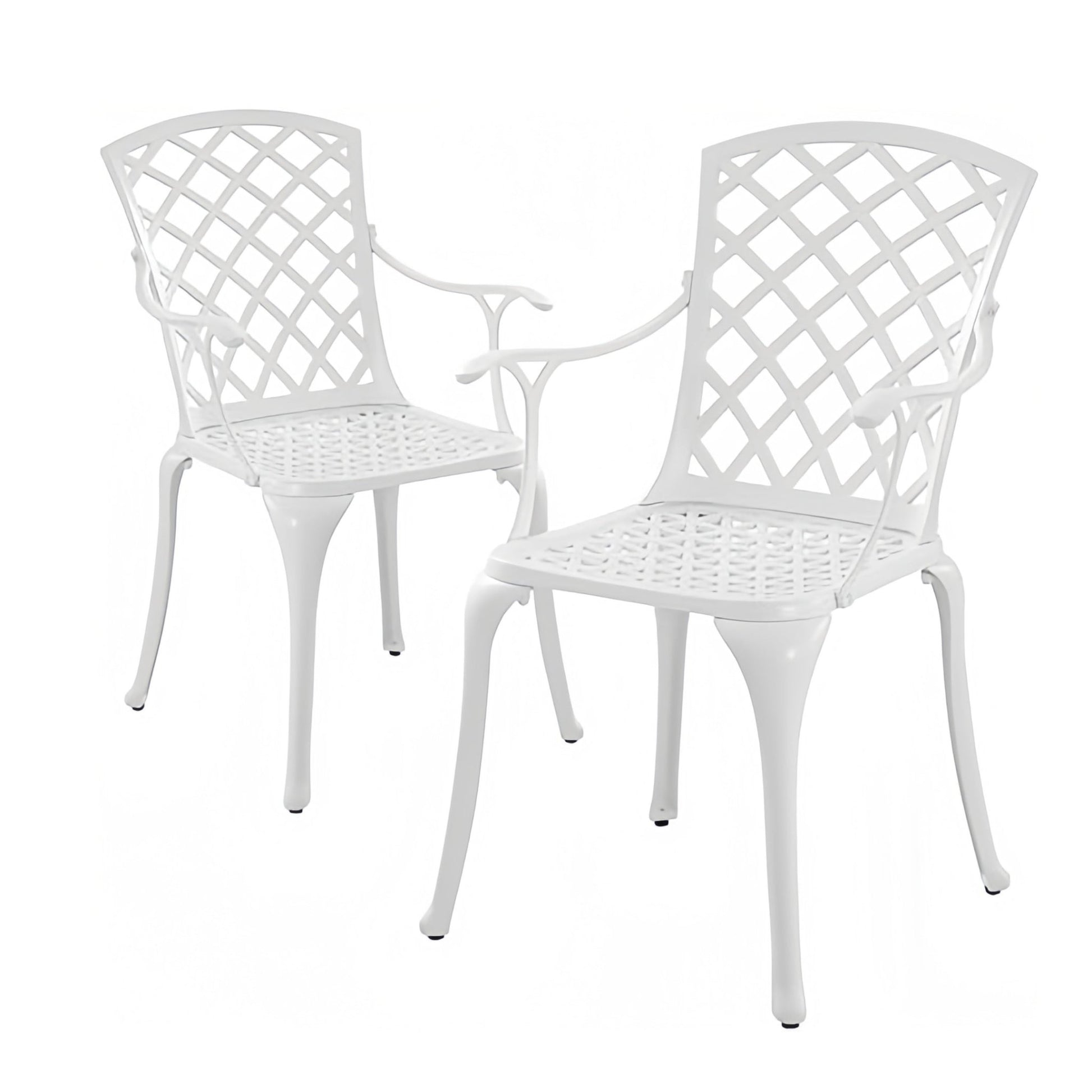2 x Lifespace Cast Aluminium Patio Garden Chairs with Armrest (White)