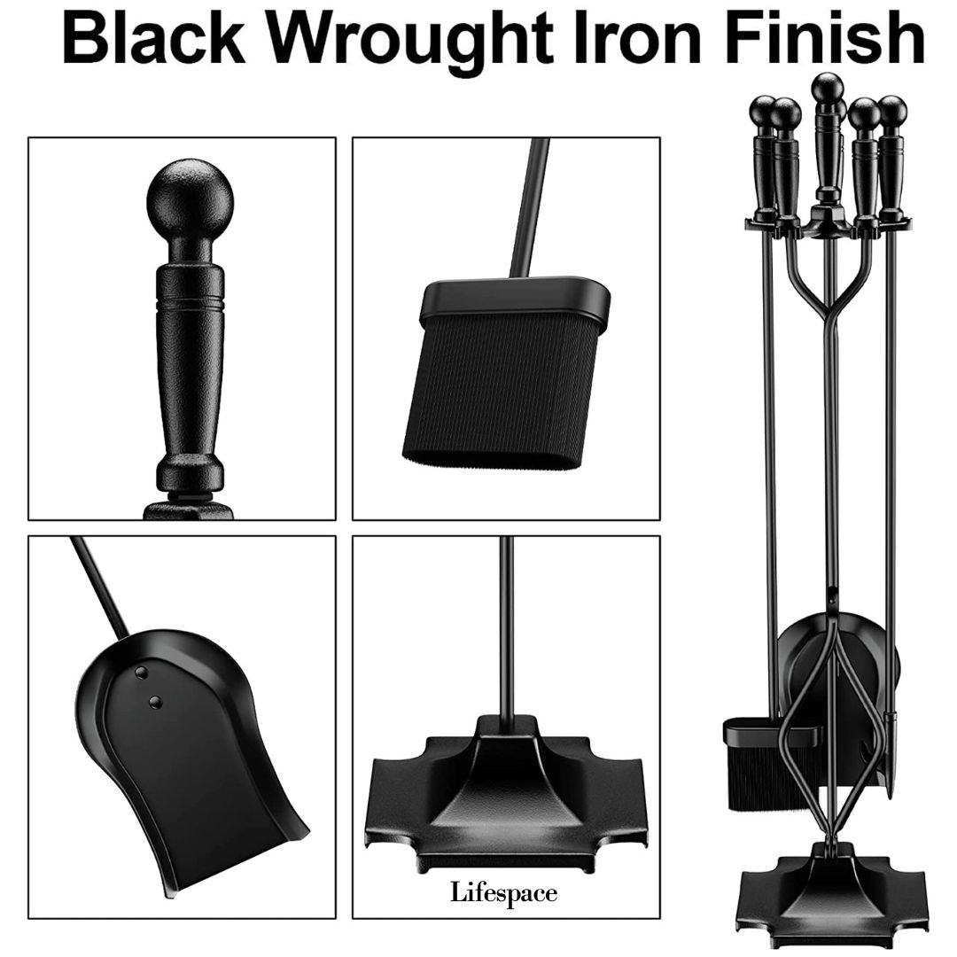Contents & Ergonomics - The set comprises a sturdy stand, brush, shovel, tong, and fireplace poker. Every tool is designed with an ergonomic handle ensuring easy grip and utility.
