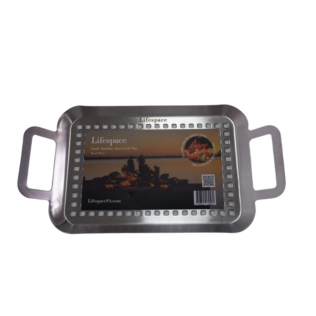 Introducing the Lifespace 430-Stainless Steel Medium Braai Pan with a perforated base, an essential accessory for your grilling needs. This versatile grill pan is designed for braaiing small meats, seafood, and vegetable items on the grill. Made of durable food-grade stainless steel with two handles, it offers convenience and durability for your grilling adventures.