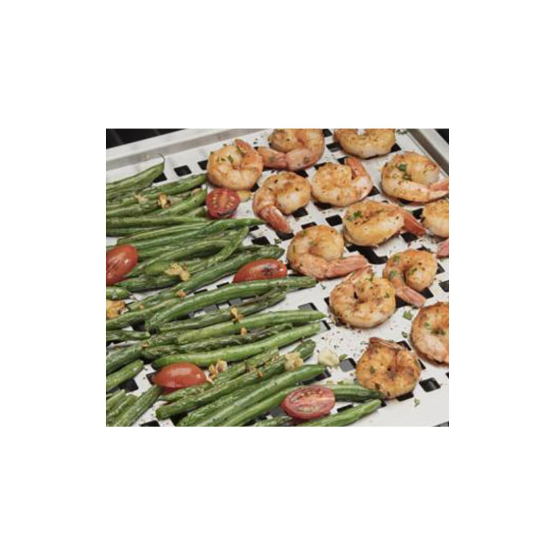 Perforated Base - The perforated base allows for even airflow over and under the food, while any drippings drain into the grill's grease drip tray, resulting in perfectly cooked and flavourful dishes.