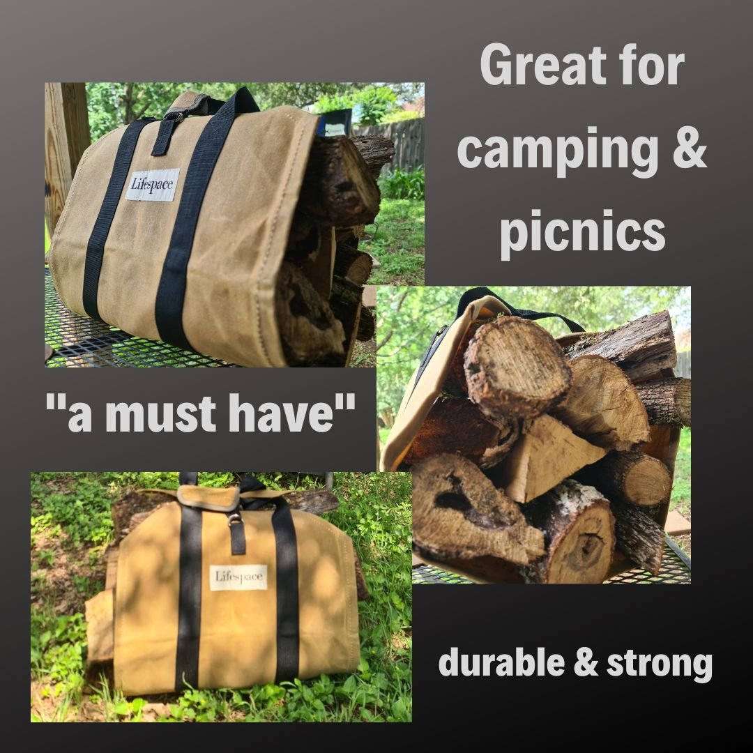 Versatile - The Lifespace log carrier bag is perfect for transporting or storing wood and many other things. The wood carrying bag is suitable for indoor fireplaces, outdoor camping, garden, home storage etc. The firewood bag carrier also makes a great ground sheet or as a stable, dry workspace for preparing the fire or food while camping. Great for carrying poles and many other items.