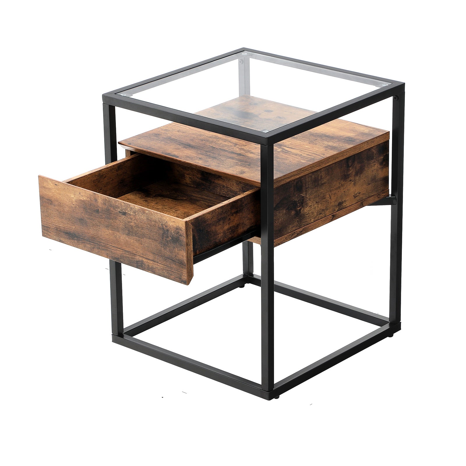 Lifespace Industrial High Quality Rustic Glass End Table with Drawer