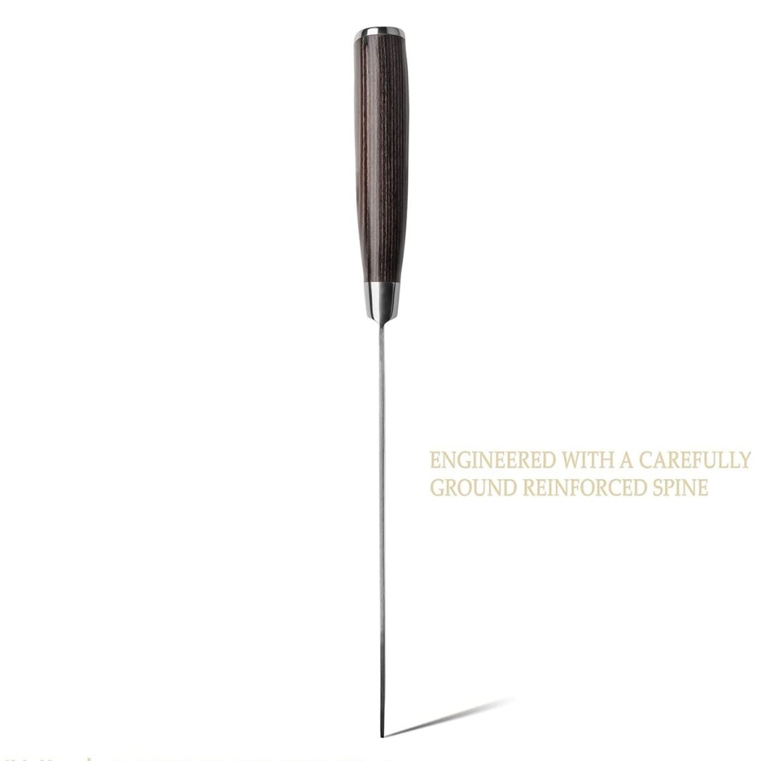 Ergonomic Pakkawood Handle - Experience ultimate comfort and control with the ergonomic handle design. Crafted from Pakkawood, it offers a comfortable grip and optimal balance between the handle and blade. Reduce wrist tension, numbness, and soreness, even during prolonged use.