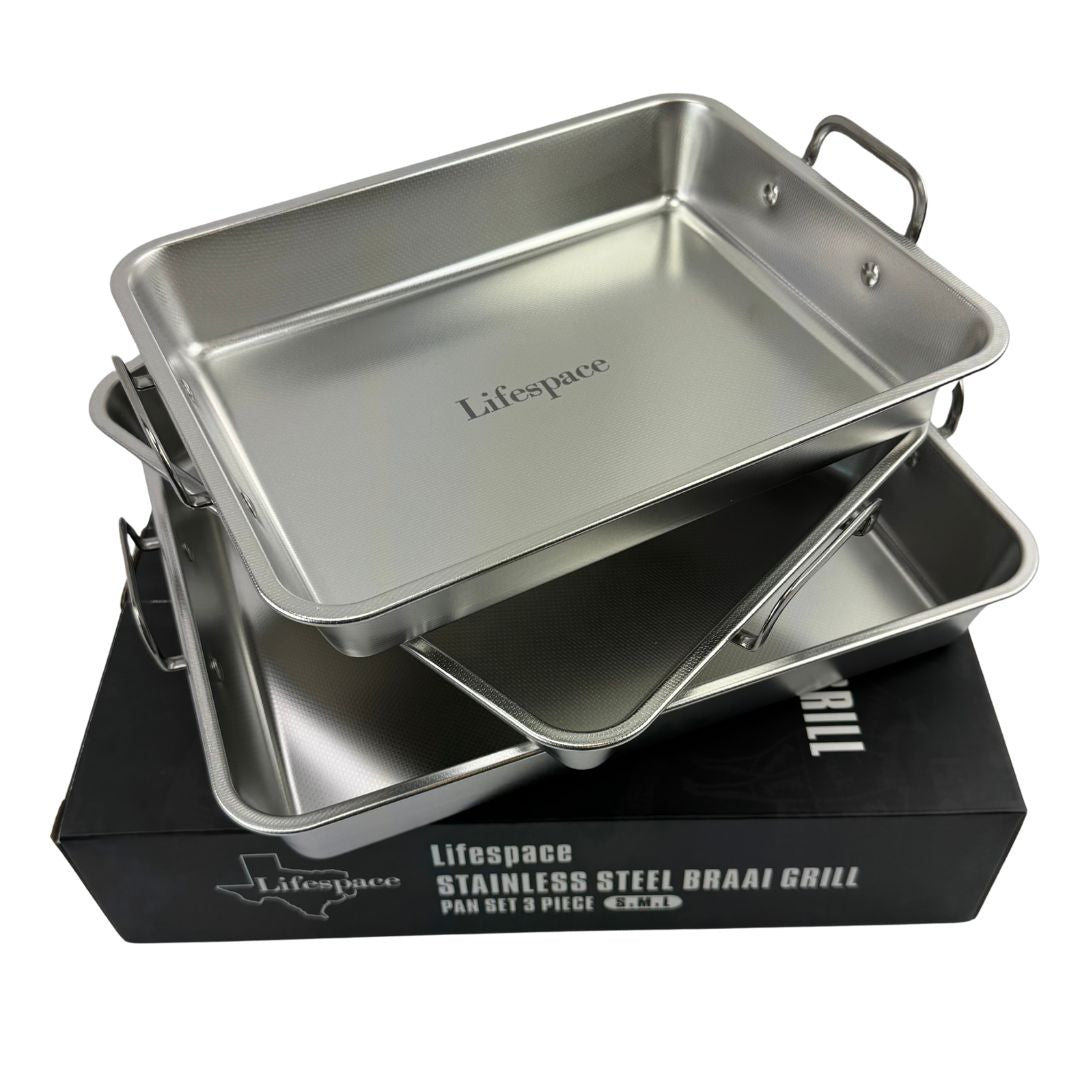 Introducing the Lifespace 304 Stainless Steel Food Grade Braai Pans – the ultimate braai, BBQ or grill companion.