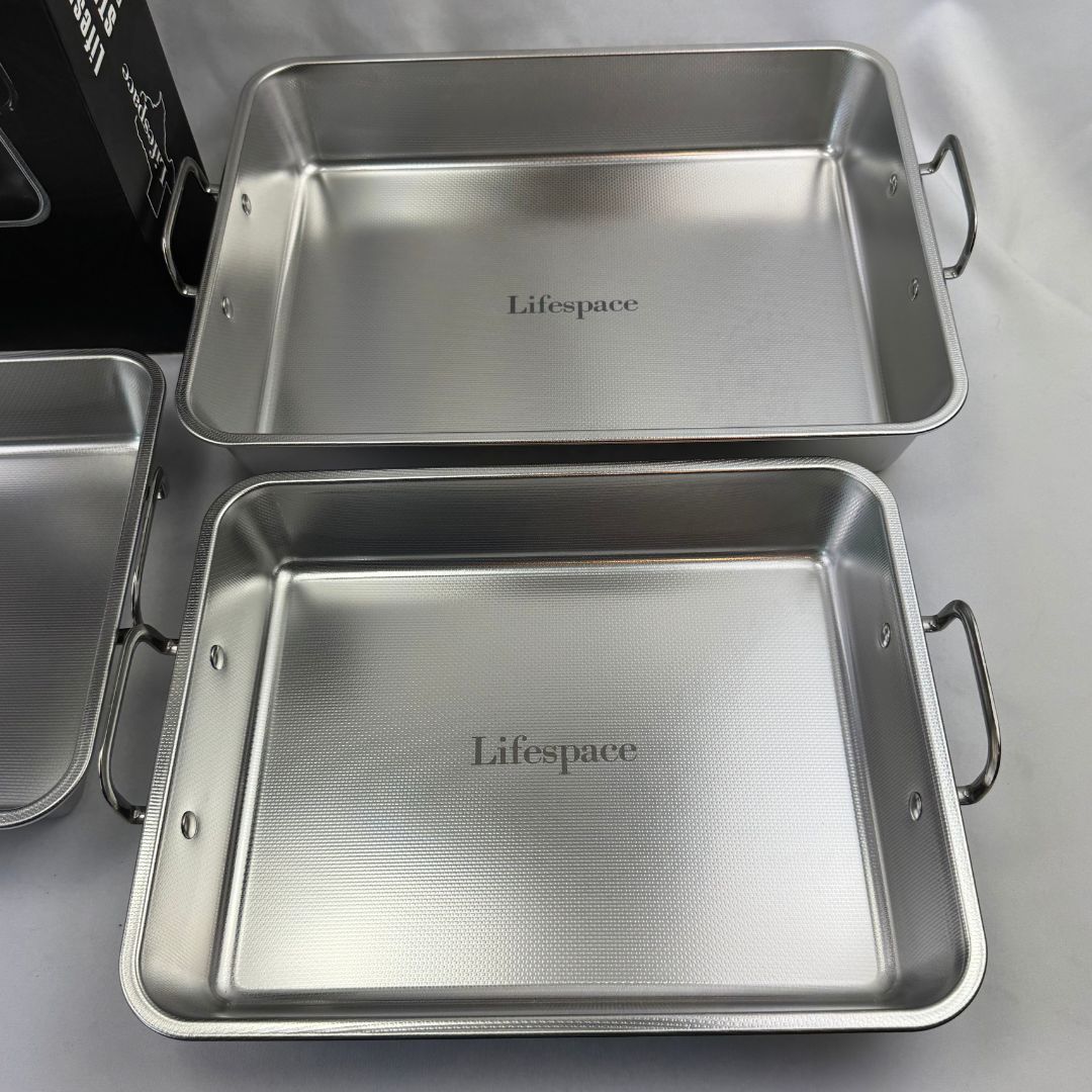Available in three practical sizes to suit all your culinary needs: Small (27cm x 21cm x 5cm), Medium (30cm x 24cm x 5cm), and Large (36cm x 27cm x 6cm).