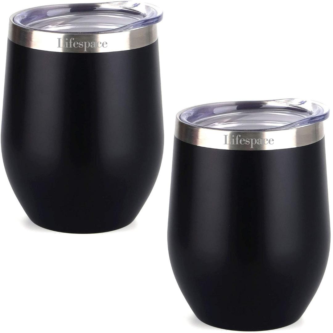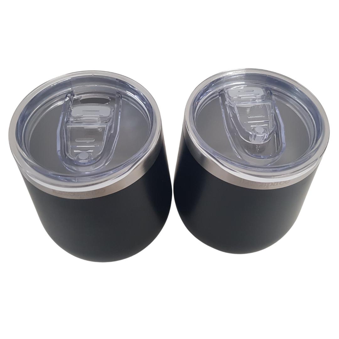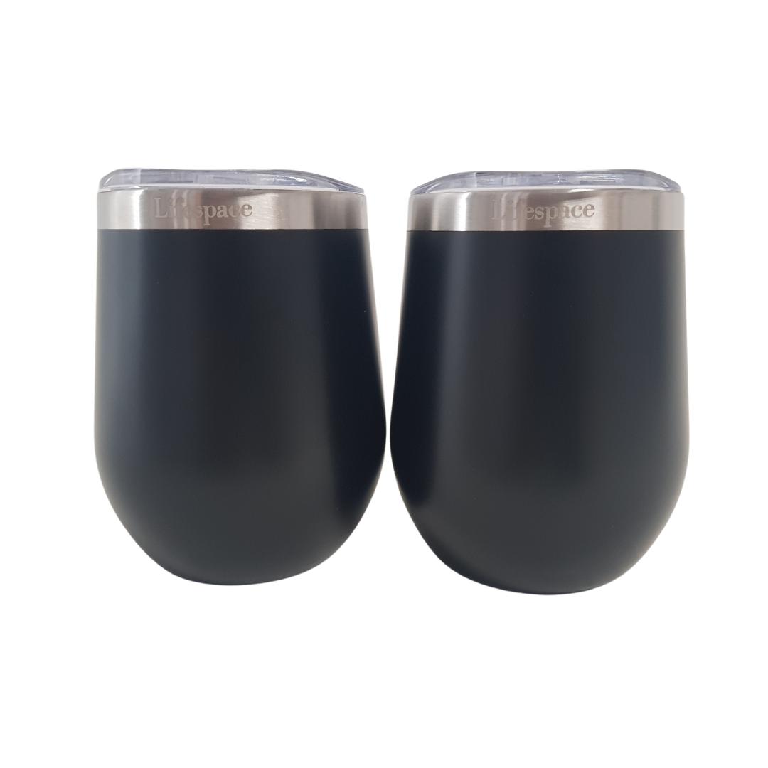 2 x Lifespace Stainless Steel Matt Black Double Walled Wine Cup