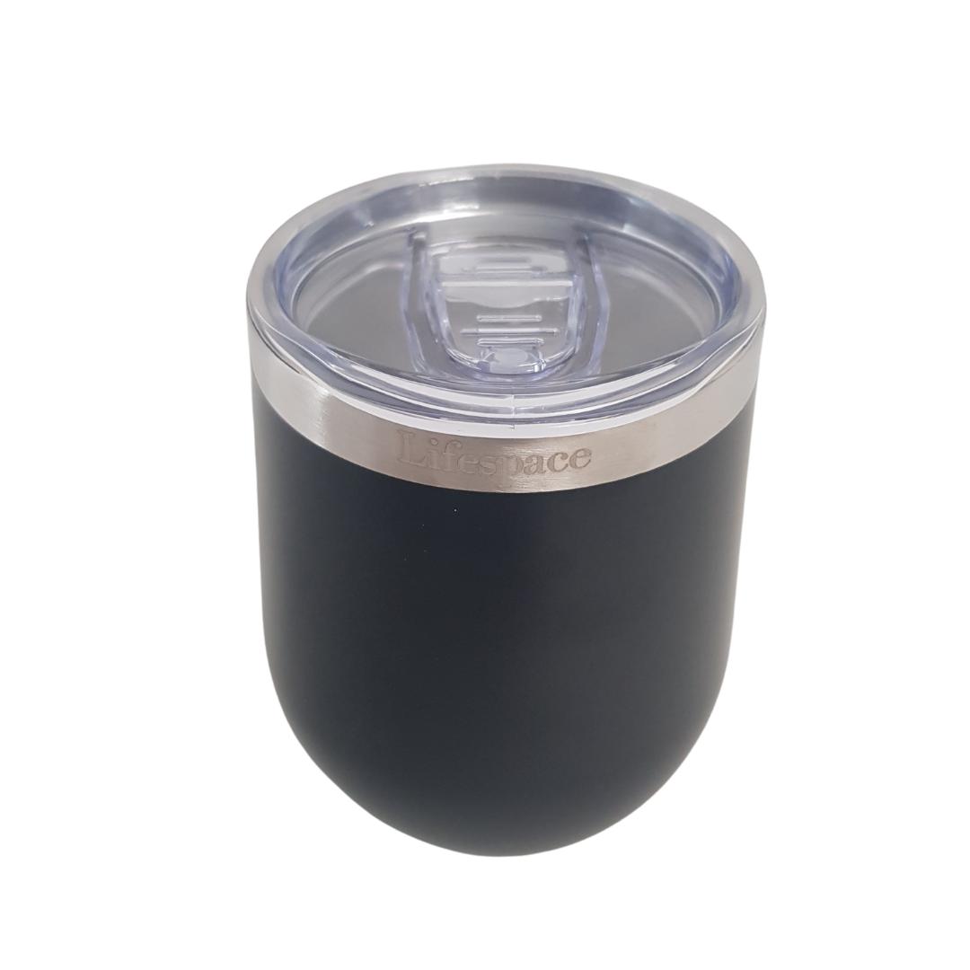 Introducing the Lifespace Premium Stainless Steel Matt Black Double Walled Wine Cups / Mugs, the perfect companion for enjoying your favourite beverages in style. Sold as a set of two, these vacuum wine tumblers are designed to elevate your drinking experience with their innovative features and sleek design.