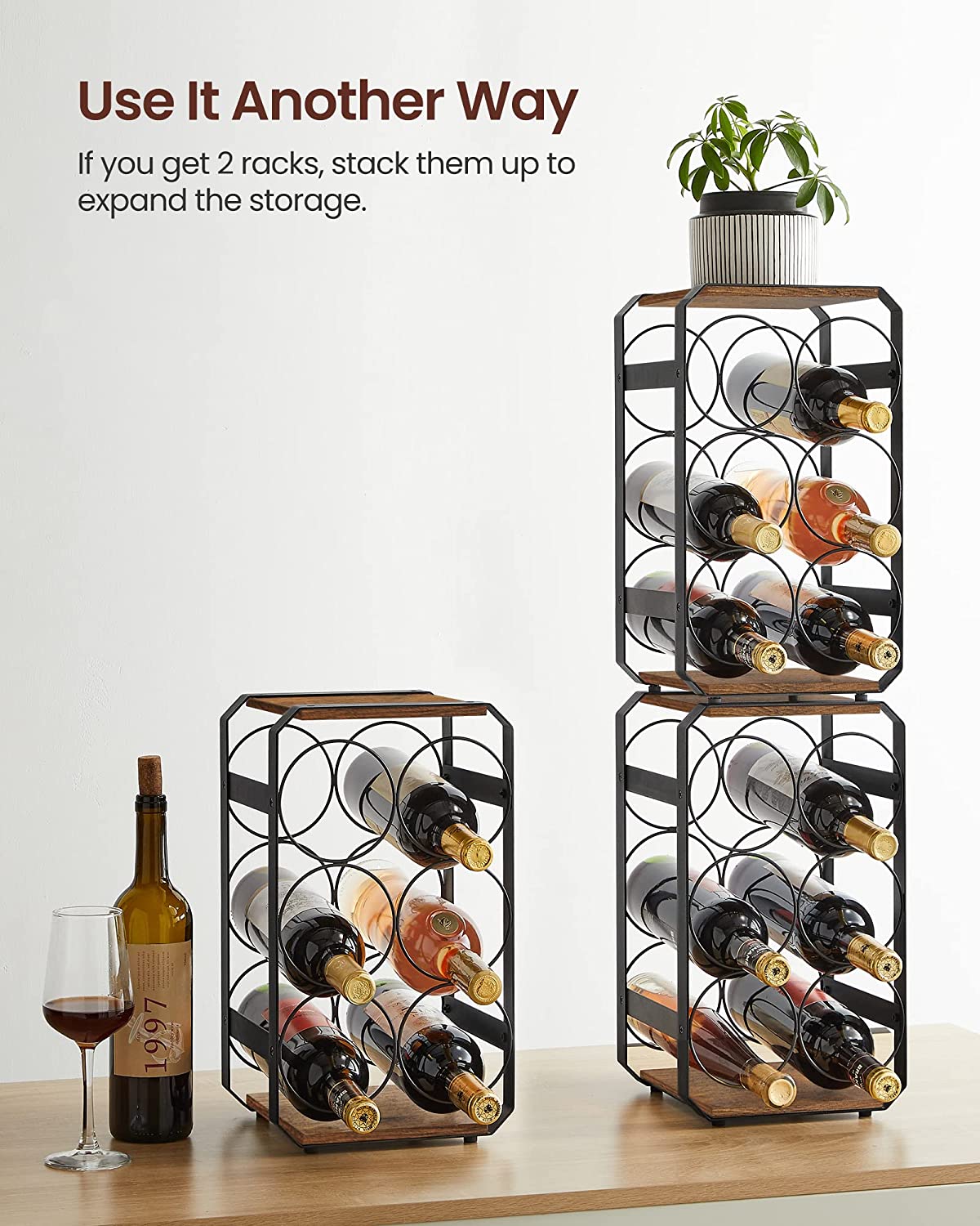 Vertical, Horizontal, or Stacked: Place the rack vertically or horizontally to fit on your countertop or in the cupboard or get another one to stack 2 racks up and expand the capacity as your wine collection grows.