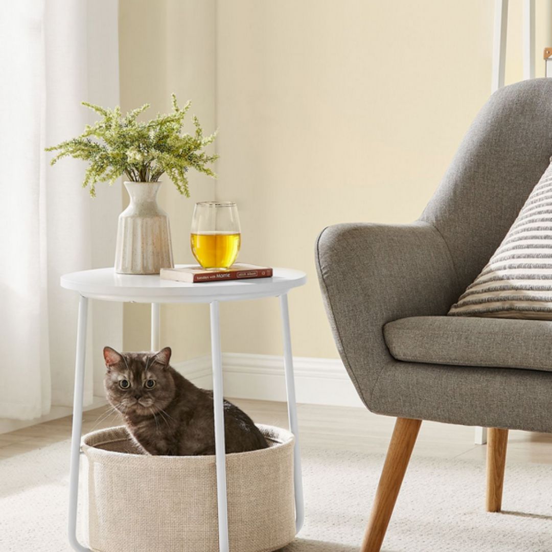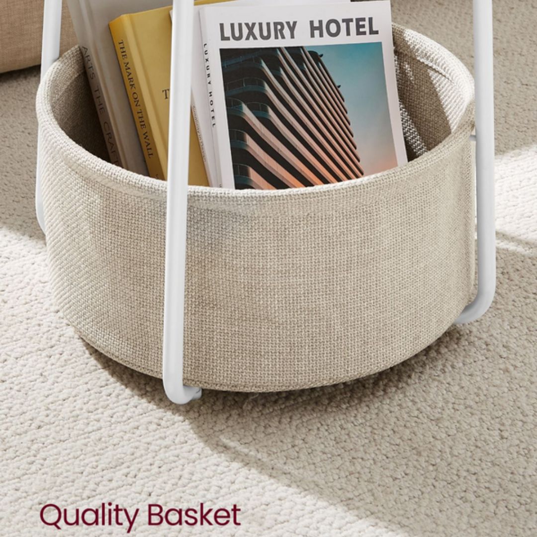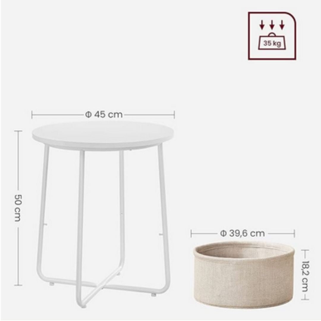 Fits Small Spaces - The 45cm diameter x 50cm high end table with a 39.6cm diameter x 18.2cm high basket fits small spaces. As a side table in the living room or as a bedside table in the bedroom, it’s not bulky but offers plenty of storage space for your items.