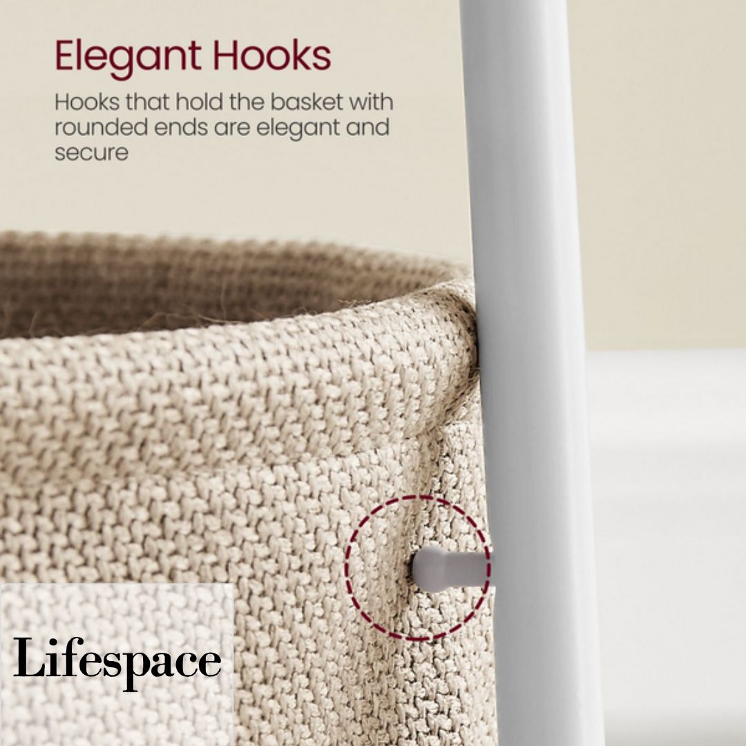 Quality Basket - The double-layer, crease-free polyester fabric basket is pleasing to the eye and chemical-free for safe use. With a linen-like look, it adds a unique touch to this small table.