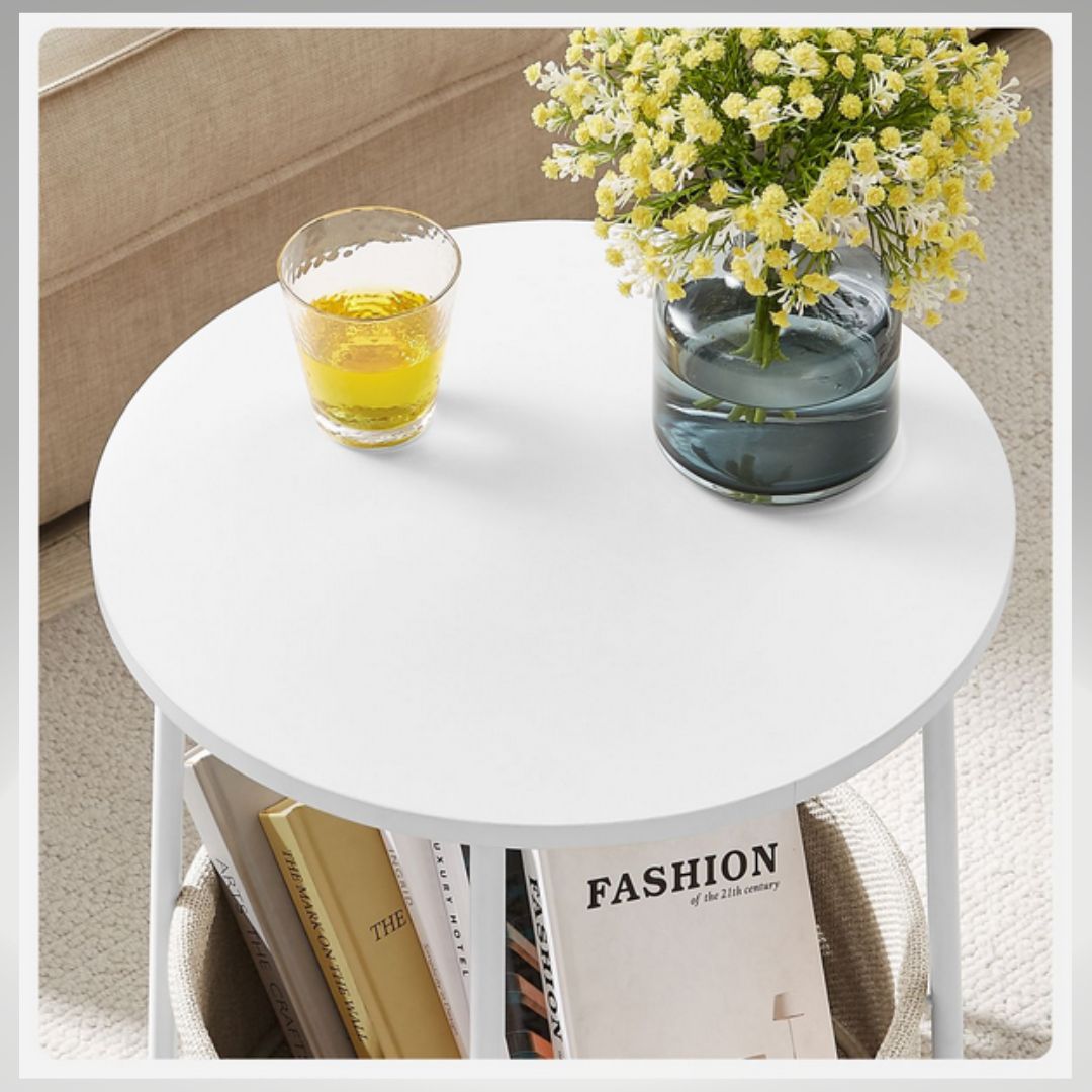 Modern and Simple - This simple white round coffee table with beige basket will add an extra touch of style to your living room or bedroom and is easy to match with a variety of furniture styles.